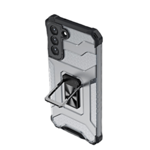 Husa pentru Samsung Galaxy S22, Silicon Rigidizat si inel-suport Metalic-Magnetic, Negru-Transparent, HUR-BBL4894